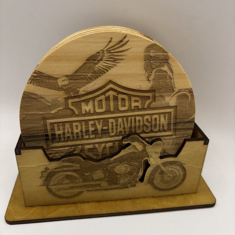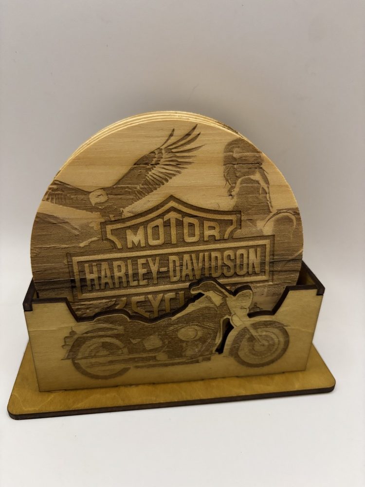 One thing always leads to another so I made him some coasters and a holder to keep them in.