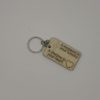 Key chain with a wooden tag and the words