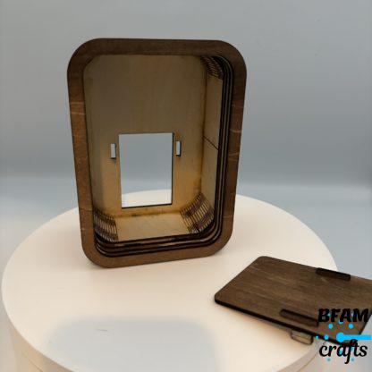 Illuminate your space with the Multi-Layered Lightbox Lantern, a beautifully crafted decorative piece designed to captivate with its multi-layered charm. Precision laser-cut from high-quality plywood, this lantern combines natural elegance with intricate artistry.